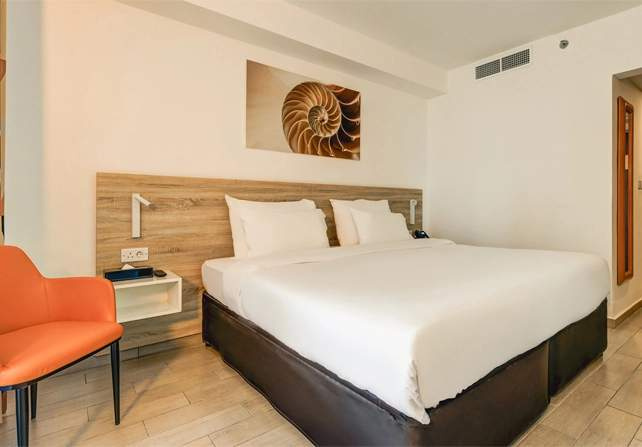 Szobák: minden komfort szoba szépen berendezett, egy hálószobás (~20 m2), légkondicionálóval (központilag vezérelt), fürdőszobával, hajszárítóval, síkképernyős tv-vel, vízforralóval és telefonnal felszerelt. Minibár térítés ellenében. A deluxe szobák berendezése elegánsabb, a szobák elhelyezkedése előnyösebb (felsőbb emeleteken). A szobákhoz erkély, balkon tartozik, szárazföldre, oldal tengerre néző vagy tengerre néző kilátással. A szálloda mozgáskorlátozott vendégek számára kerekesszékkel használható liftet, részben kerekesszékkel használható fürdőszobákat és akadálymentes hozzáférést biztosít a közösségi terekhez.