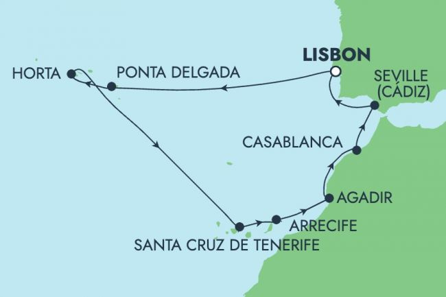 Az Atlanti-óceán partvidéke és szigetei évszázadok óta jelentős szerepet játszanak a törénelemben, a kultúrában és a kereskedelemben, melyek nyomába eredünk csoportos hajóutunkon. Lisszabonból indulva meseszép tájakon, izgalmas látnivalók között barangolunk. Elsőként a Portugáliához tartozó különleges Azori-szigetek legnagyobb tagjával ismerkedünk, majd a spanyolajkú Kanári-szigetek következnek. Varázslatos világ vár ránk Marokkóban, ahol szintén két kikötőben állunk meg, majd a dél-andalúziai Malagában és Cadizban időzünk, mielőtt ismét portugál földre érünk.
