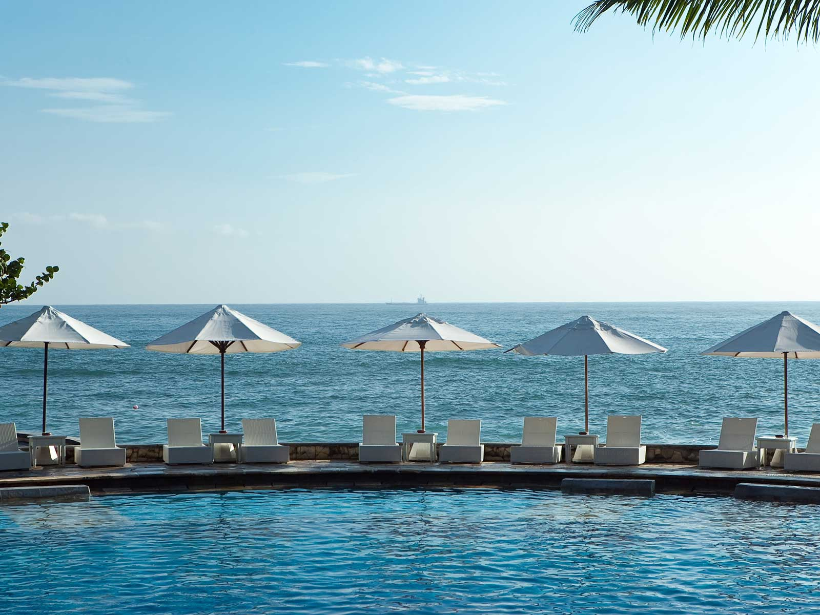 A szálloda Nusa Dua-n található, mely Bali legelőkelőbb üdülőhelyeként ismert, a repülőtértől kb. 15 km-re. A hotel környezete és panorámája különleges, ahonnan csodálatos kilátás nyílik az Indiai-óceánra.