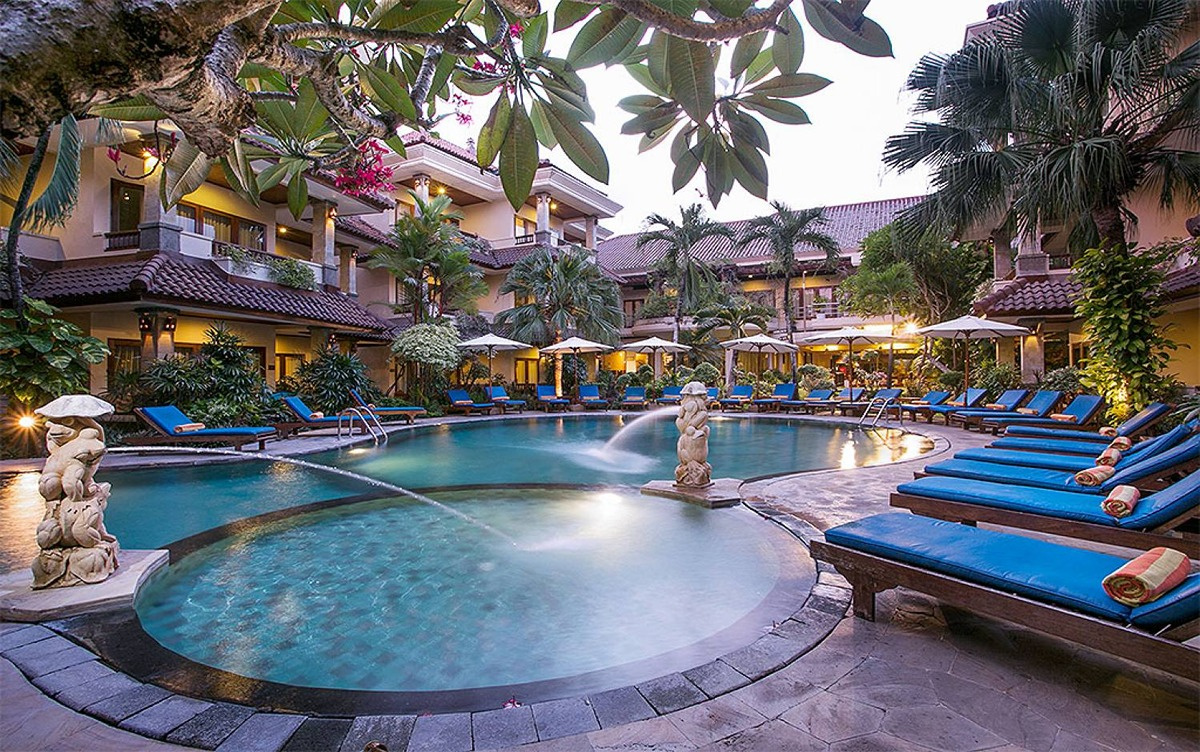 A családias hangulatú szálloda a repülőtértől kb. 30 percre található Sanur üdülővároskában. A homokos strand kb. 10 perces sétára van, ha elég korán kelünk, gyönyörű napfelkeltében lehet itt részünk.
