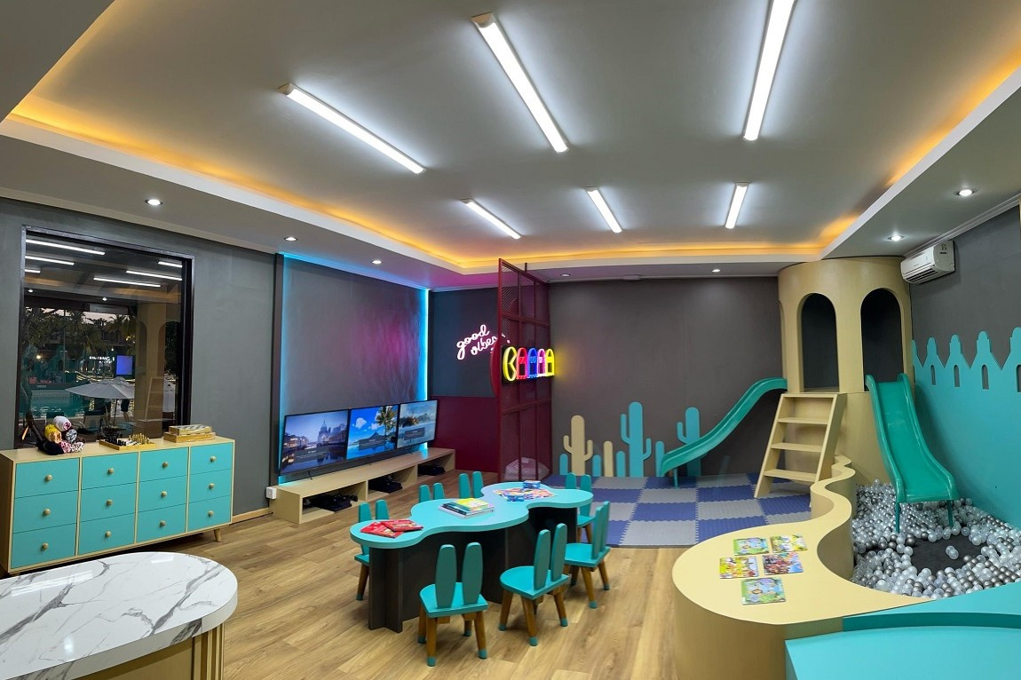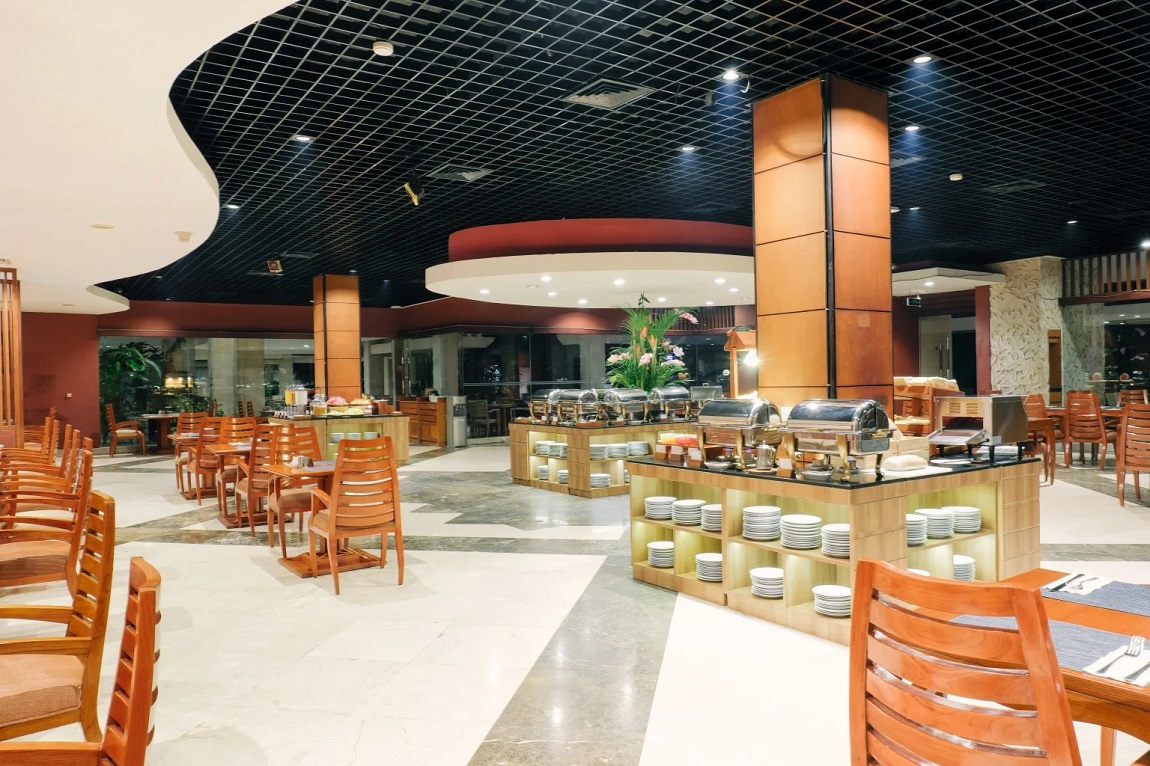 Szolgáltatások, sport: Éttermek, bárok, medence kis vízeséssel és jacuzzival, szórakoztató programok animátorokkal, fitneszterem, szauna, spa részleg, kölyökklub, játszótér, valutaváltás, esküvőszervezés, kirándulások szervezése