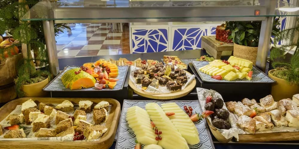 A hotel reggelis vagy félpanziós ellátást kínál, látványos tengerre néző étteremmel, amely mediterrán és nemzetközi fogásokat szolgál fel. A bár könnyű snackeket és frissítő italokat kínál napközben.
