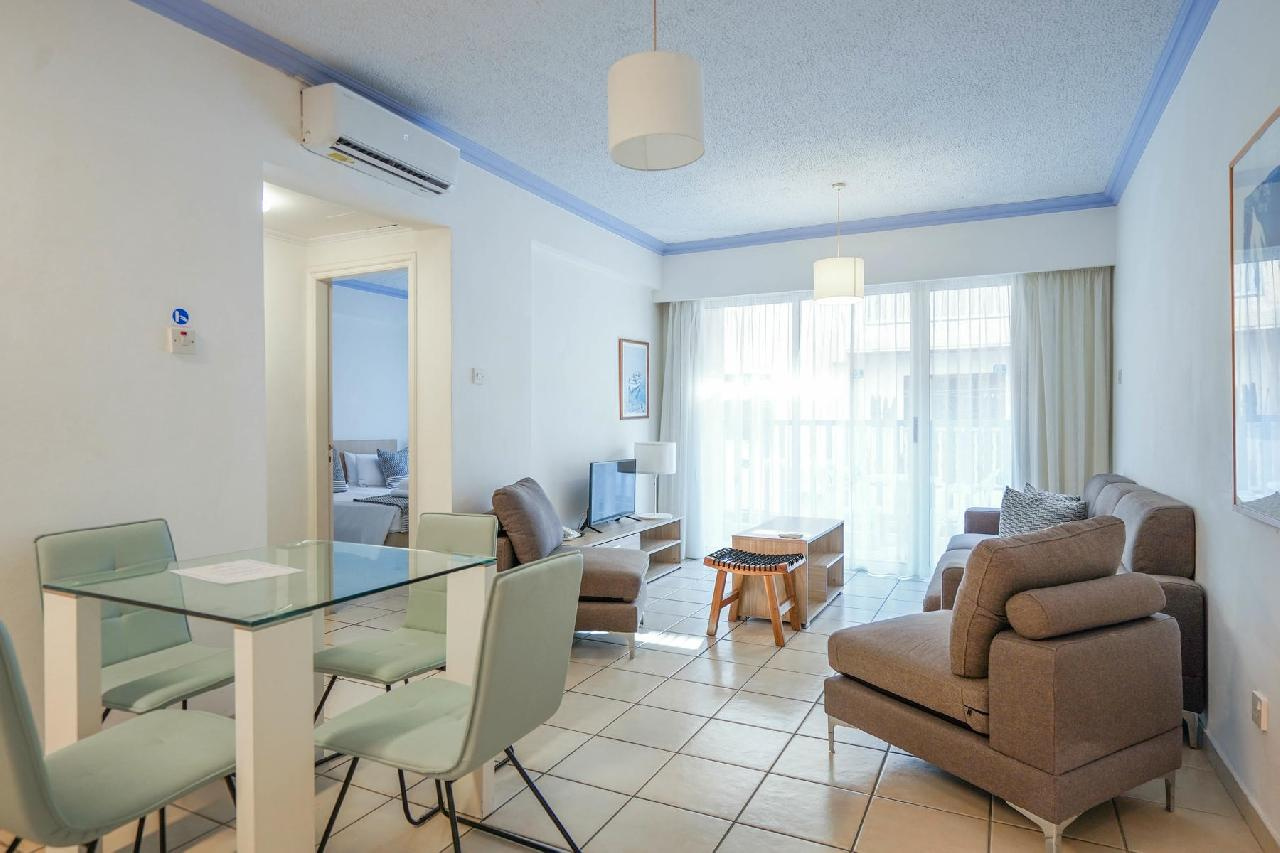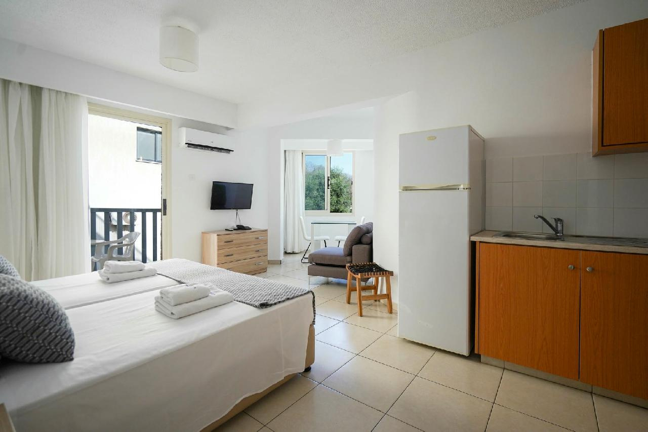 Paphos központjában, a város Kato Paphos elnevezésű részén, az archeológiai park (festői görög és római romok) közelében, a városi tengerparti sétánytól ~80 méterre, a kikötőtől pedig mindösszesen 600 méterre épült, rendkívül népszerű, több épületblokkból álló „A” kategóriás (legmagasabb besorolás) apartmanhotel-komplexum.