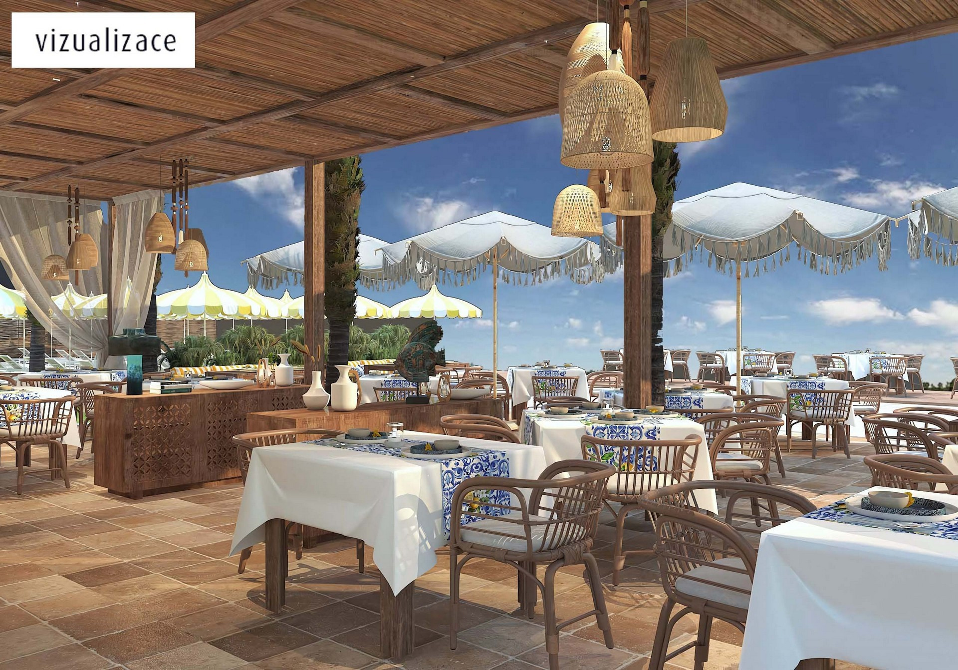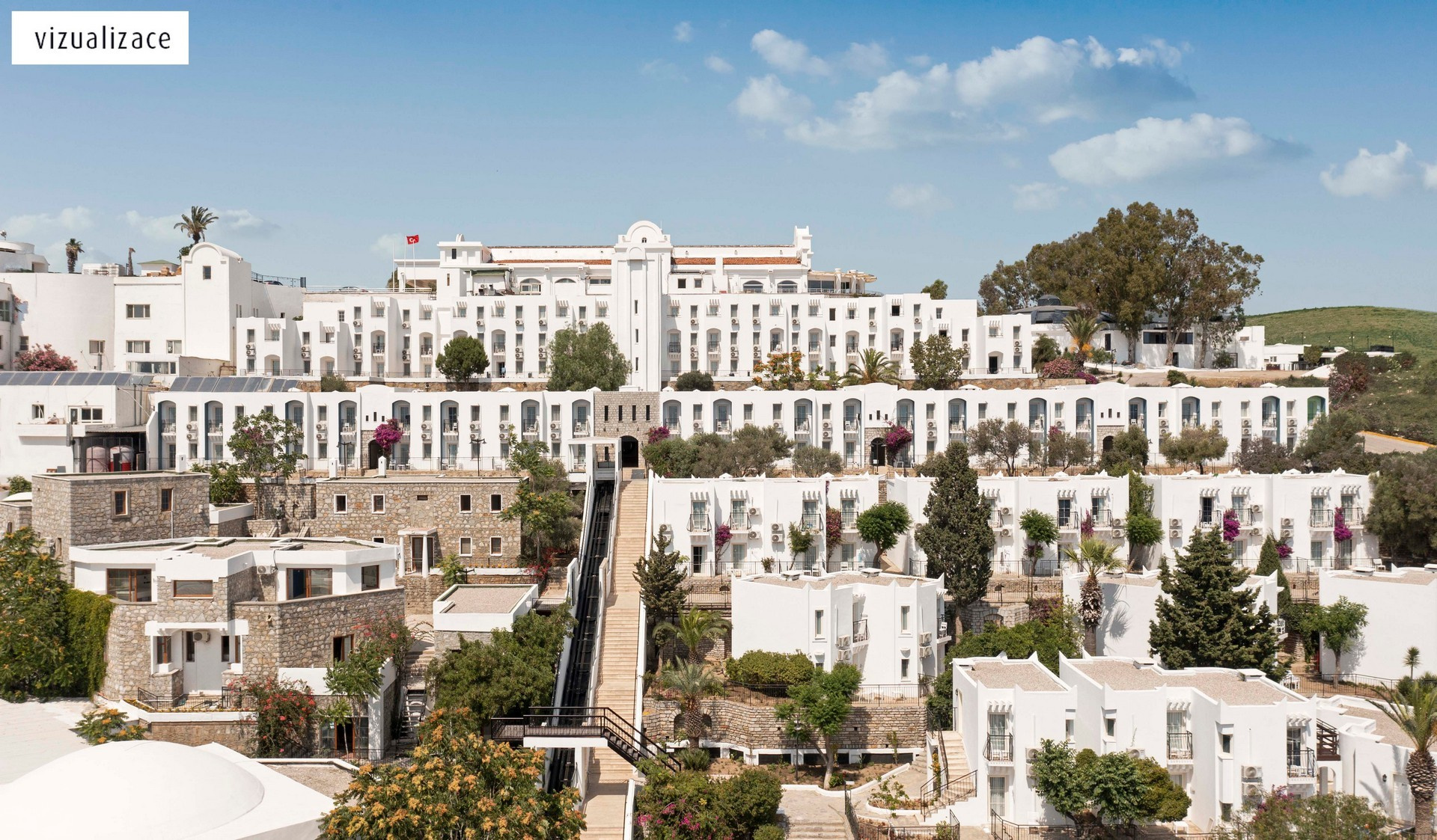 A központ közvetlen közelében található, modern 5 csillagos szálloda egy tengerparti falu egyedülálló hangulatát idézi. A buganvillákkal és olajfákkal szegélyezett sikátorszerű kis utcácskák természetes és harmonikus látványt nyújtanak.