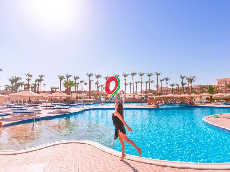 Közvetlenül a szálloda saját durva szemcséjű, homokos, aprókavicsos tengerpartján (fürdőcipő viselése javasolt), Hurghada nyüzsgő központjától kb. 15 km-re található (taxi, térítés ellenében) és kb. 7 km-re a repülőtértől.
