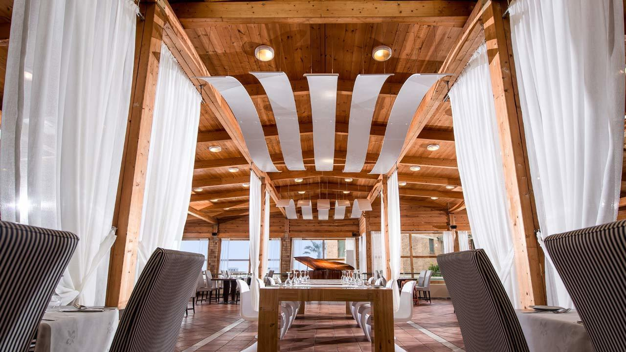 All inclusive ellátással foglalható, mely tartalmazza a büféjellegű reggelit, ebédet és vacsorát. Napközben snackételek, tea, kávé, sütemény, fagylalt kérhető. Helyi-, illetve bizonyos import italok 10:00-23:00 óráig fogyaszthatóak (üdítő, víz, forró italok, csapolt sör, bor pohárban, likőrök, brandy, röviditalok, koktélok). Főétterme mellett két a’la carte étterem (mediterrán és görög ételekkel, előzetes foglalás szükséges), négy bár (lobbi-, bor-, medence melletti- és tengerparti bár), valamit vegetáriánus-, gluténmentes- és gyerekmenü várja a vendégeket. Éttermeiben megfelelő öltözet viselendő.