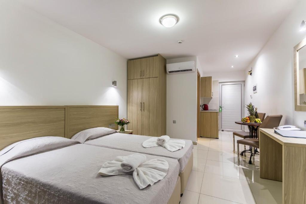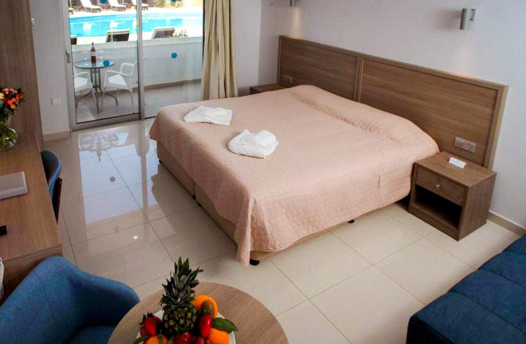Szobák: minden deluxe szoba egy hálószobás (~22m2), modern berendezésű, légkondicionált, fürdőszobás, hajszárítóval, síkképernyős tv-vel, vízforralóval, szobaszéffel, hűtővel és telefonnal felszerelt. A deluxe családi szobák hasonlóan berendezettek, nagyobb lakótérrel (~35m2) rendelkeznek, a szobákban egy szófa (kihúzható kanapé) is található. A szuperior stúdiók felszereltsége és berendezése a deluxe szobával azonos, azonban a szobákban egy kis konyharész is kialakításra került (főzési lehetőség). Minden szobához erkély vagy terasz tartozik, szárazföldi vagy medencére néző kilátással.