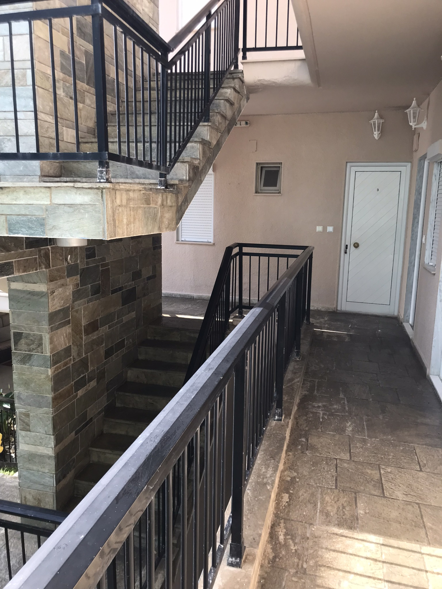 Az apartmanház Sarti új részén (Village) fekszik, kb. 70 méterre a homokos-aprókavicsos tengerparttól és kb. 500 méterre a központtól. A közelben éttermek, tavernák és pékség is található, ahol a híres „Liturgia” nevű kenyér is kapható.