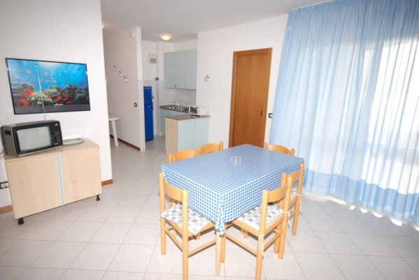 Apartmanok: (fürdőszoba (zuhanyzó/WC), Sat TV, erkély/: B4 (2-4 fős, nappali kétszemélyes kanapéval vagy 1 egyszemélyes kanapéval és 1 kinyitható ágy vagy 2 kanapé vagy emeletes ágy, 1 szoba franciaággyal, főzősarok). B5 (3-5 fős, nappali kétszemélyes kanapéval és egyszemélyes ággyal vagy kinyitható ággyal, 1 szoba franciaággyal, főzősarok), C6 (4-6 fős, nappali kétszemélyes kanapéval, 1 szoba franciaággyal, 1 kétágyas szoba vagy emeletes ágyas szoba, főzősarok, légkondicionálás).