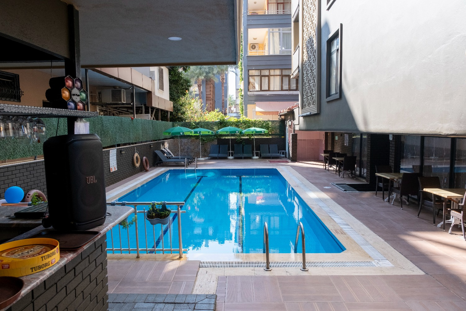Az egyszerű, helyi besorolás szerinti 3*-os, összesen 60 szobás kis szálloda az Antalya Repülőtértől kb. 130 km-re található Alanya központjának közelében, 80 méterre a Damlatas strandtól, melyben a Kleopatra strand folytatódik az alanyai vár irányában.