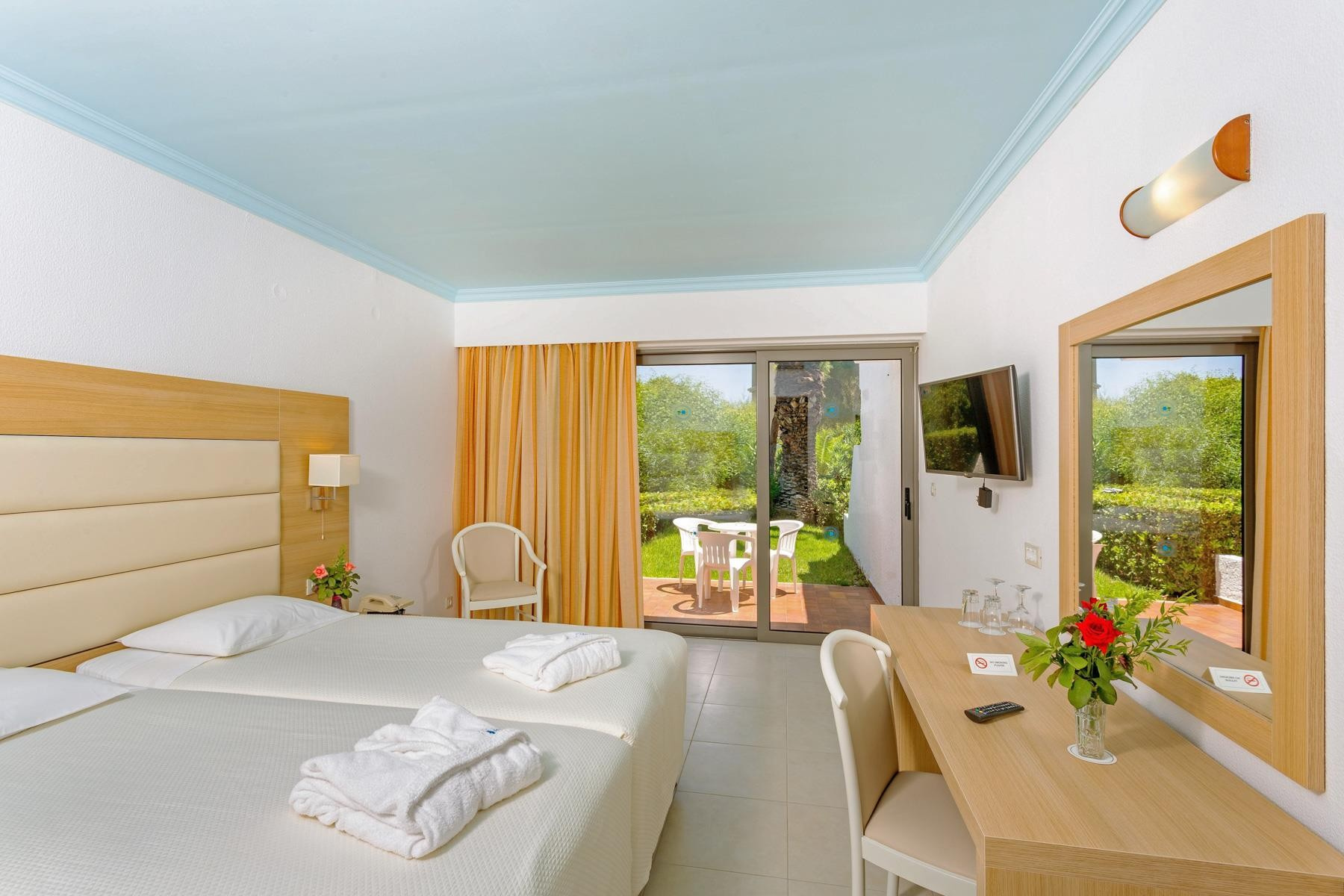 A 4 csillagos, modern Blue Horizon Hotel Ialyssosban található, a központtól kb. 400 m-re. A komplexum egy gondozott kertben helyezkedik el, közvetlenül a kavicsos strand melett. Rodosz városa kb. 10 km-re, ahova menetrend szerinti buszokkal lehet eljutni (megálló kb. 300 m-re). Egyaránt ideális választás a pihenésre és aktív pihenés szerelmesei számára. Minden korosztály számára ajánljuk.