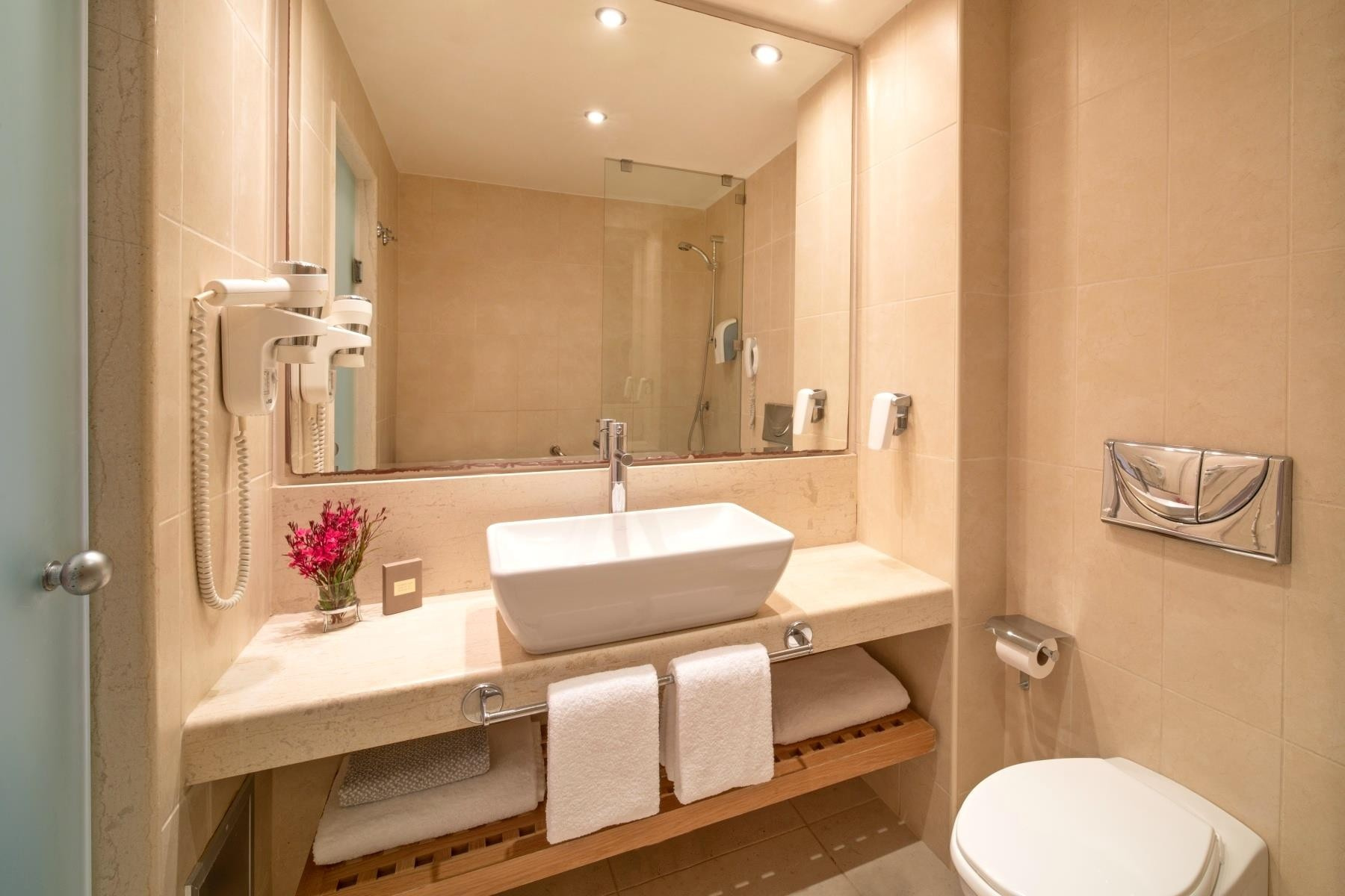 - fürdőszoba (fürdőkád vagy zuhanyozó, hajszárító, WC)