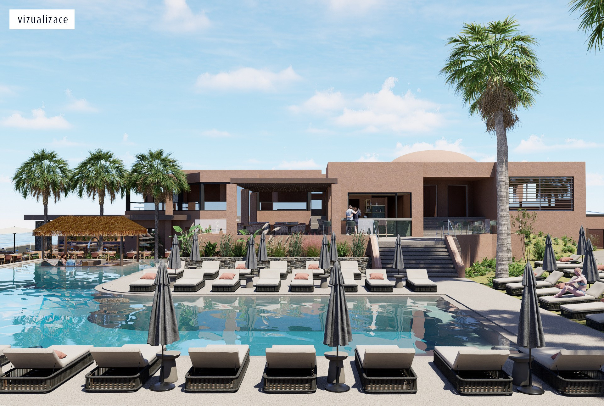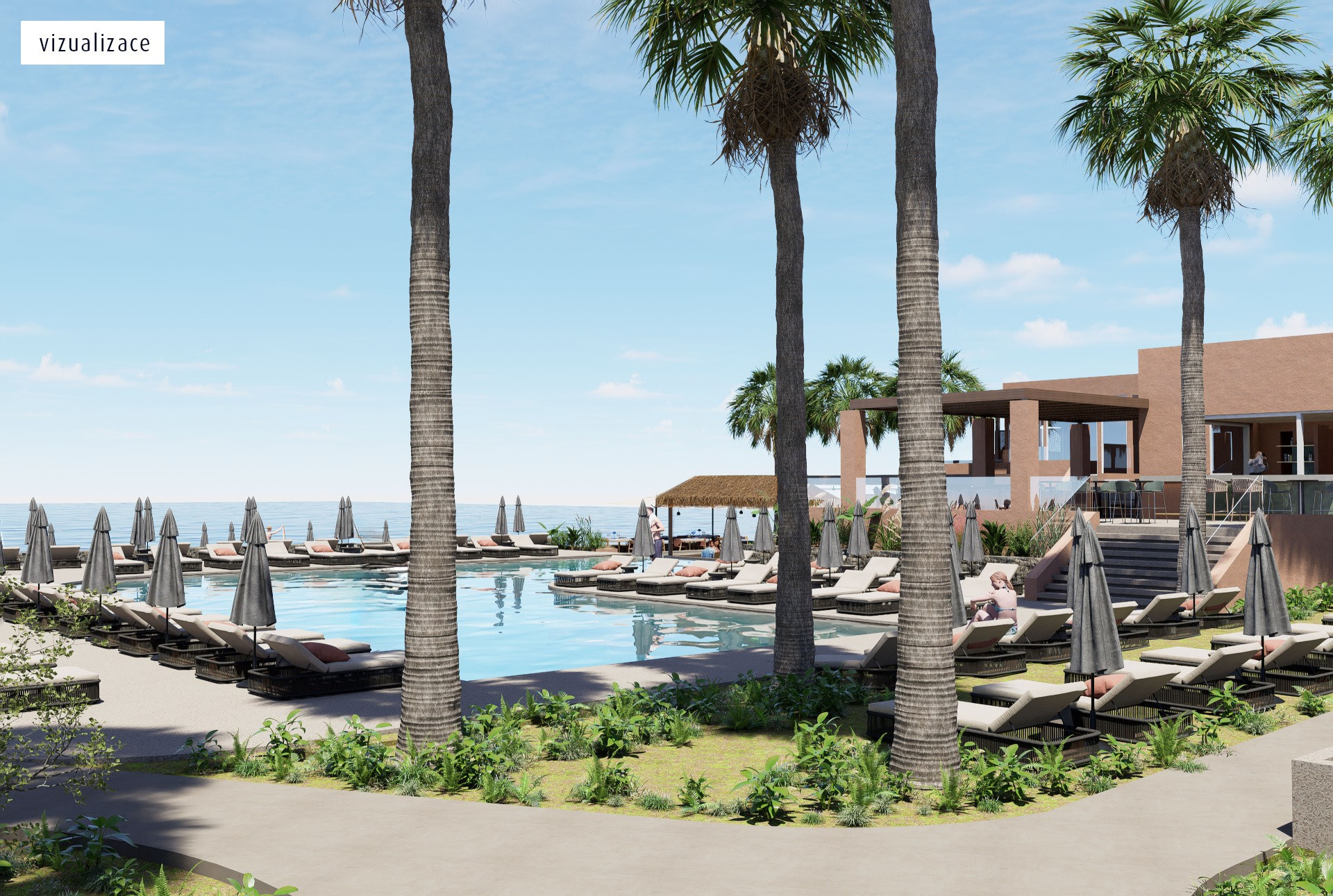 - bungalók - medencére nézők, az első sorban, a tenger mellett