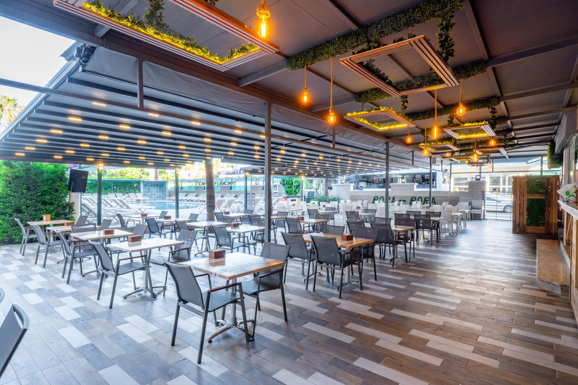 - medence (napozóterasz, ingyenes napágyakkaé és napernyőkkel)