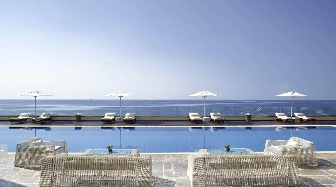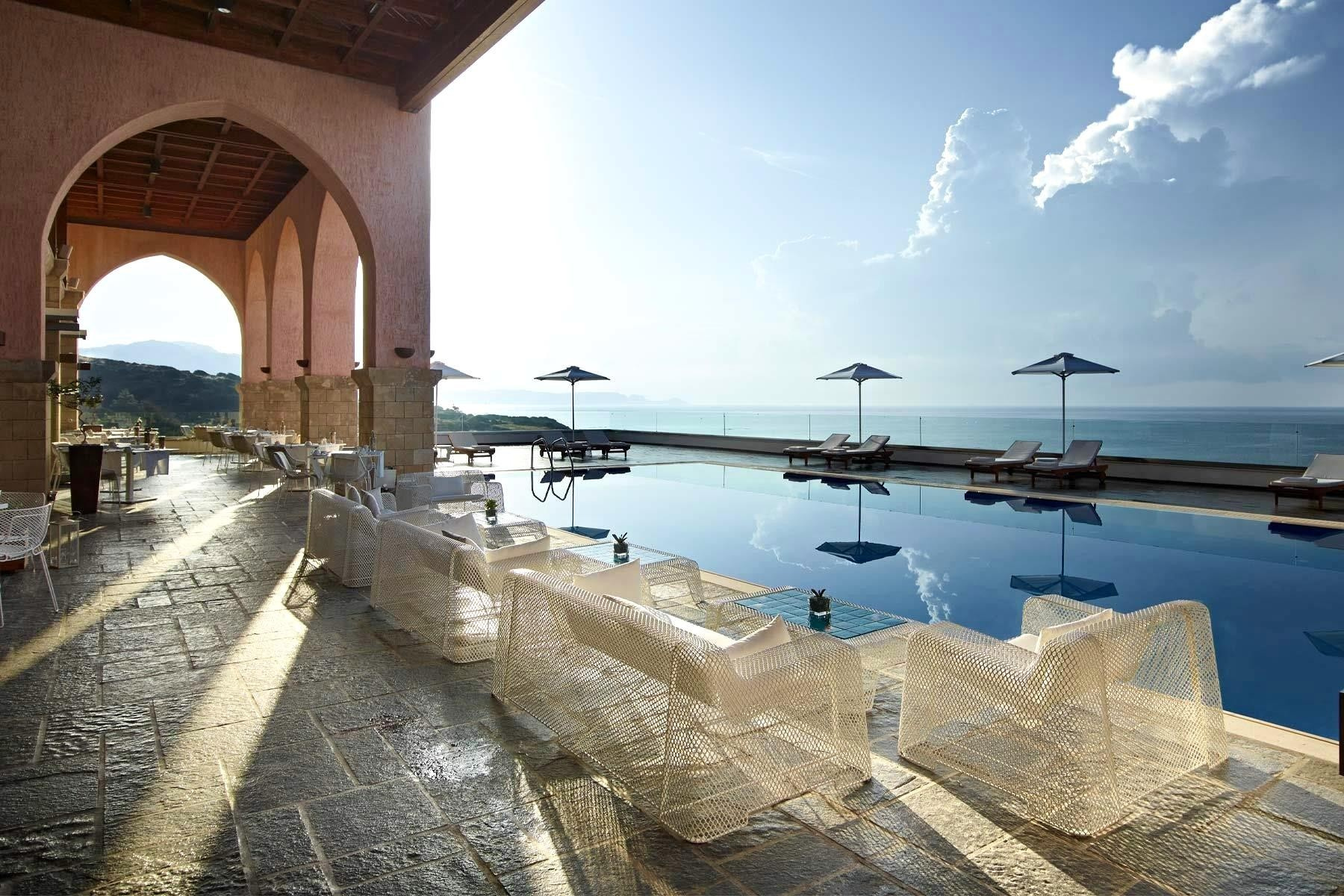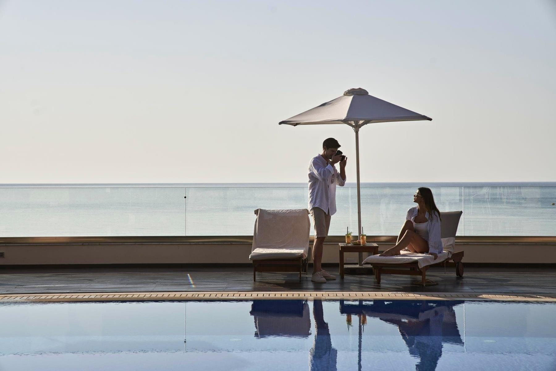 - Superior Junior-suitek - felső emeleti, tágasabbak, terasz, saját medence, napozóágyak a teraszon, tengerre nézők