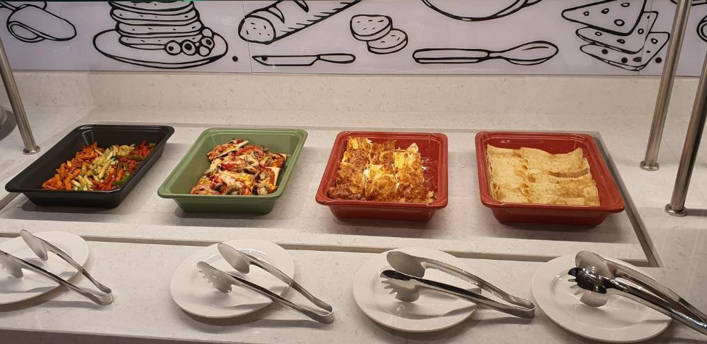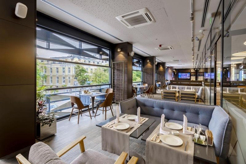 Reggelis ellátással foglalható. A hotel két éttermében felár ellenében étkezhetnek a vendégek. A szállodához egy lobby bár és egy zongora bár is tartozik.