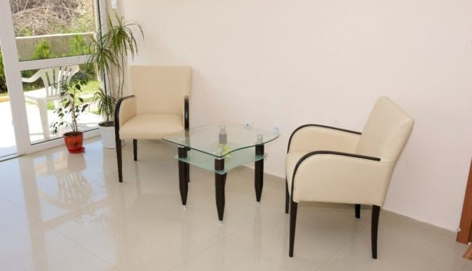- Apartman (One-bedroom apartment): nappali és egy külön hálószoba; konyhasarok főzési lehetőséggel: főzőlap, hűtőszekrény, étkészlet, edények, serpenyők. Tengerre vagy parkra néző erkély. Maximum férőhely: 4 fő (2 felnőtt + 2 gyerek vagy 4 felnőtt)