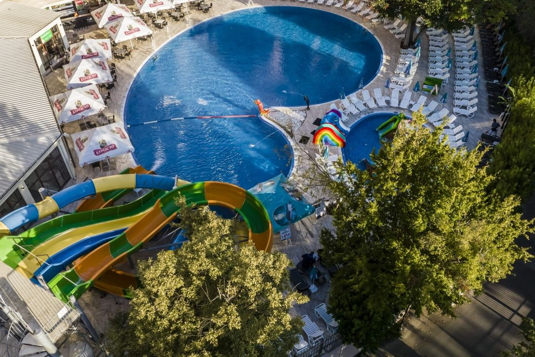 • 1 szabadtéri medence nagy csúszdákkal