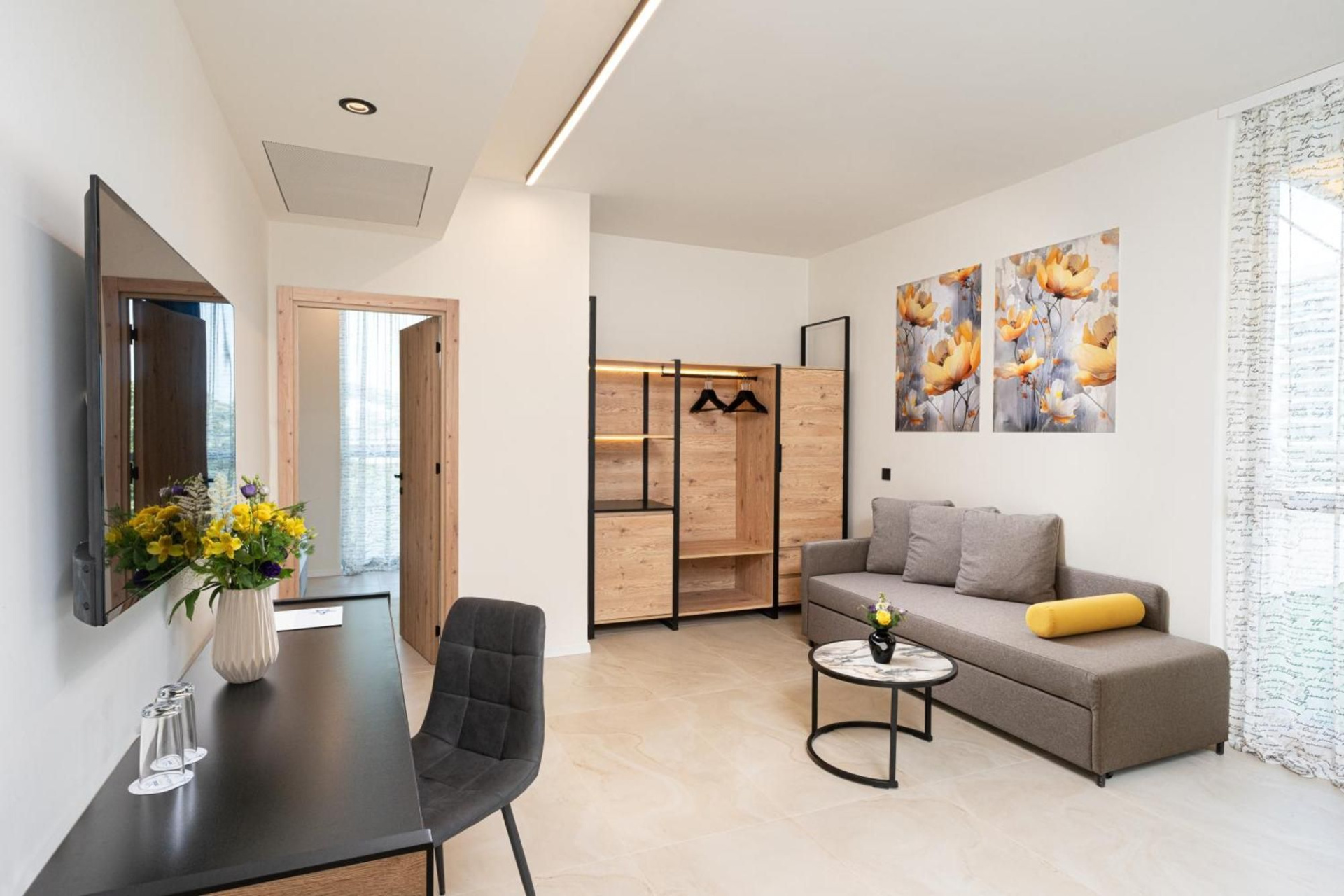 • Stúdió: kb. 36 m², nagyobb, mint a superior kétágyas szobák, franciaágy, egy kétszemélyes kanapéágy és egy egyszemélyes kanapé,max. 2+2/3+1 fő