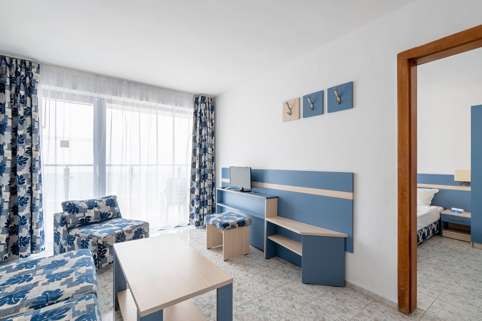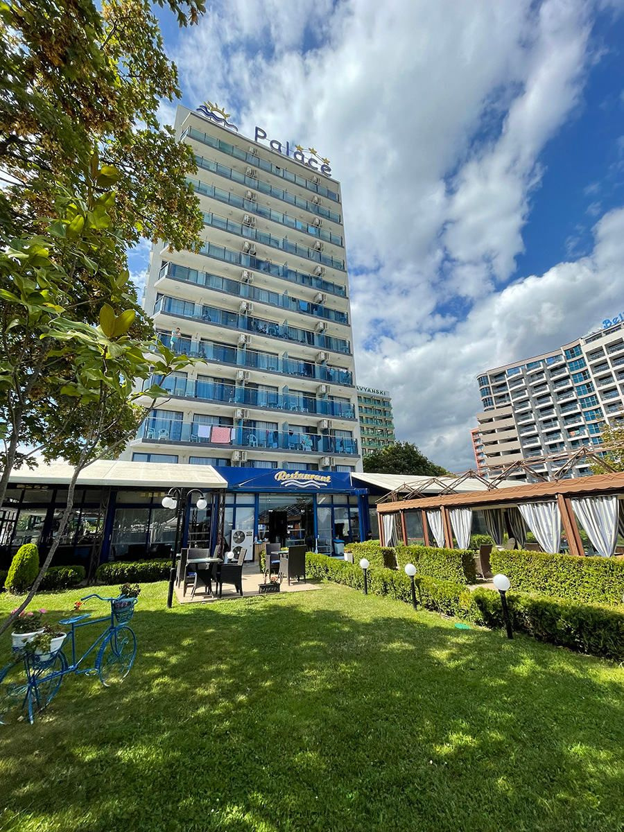 A szálloda Napospart északi részén található, a parttól csak a partmenti sétány választja el..