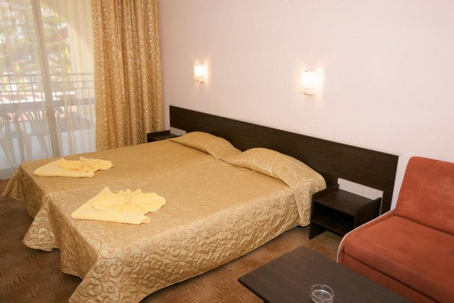 • Hotel Yavor Palace**** Napospart központi részén, a parttól kb. 200 méterre található. A 200 szobás szálloda csendesebb környezetben, de a központi sétánytól csak egy utcányira helyezkedik el. A standard és a medencére néző kétágyas szobák, 2 felnőtt mellett akár 2 gyermek részére is pótágyazhatóak.