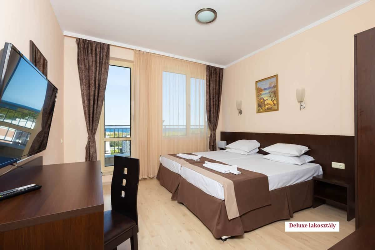 • Deluxe két hálószobás lakosztály (APT 2 bedroom VIP): 95-125 m², nappali és 2 hálószoba 2-2 egyszemélyes ággyal, 2 WC, 3 TV készülék, nagy panoráma erkély nyugágykkal. Maximum 6 fő elszállásolására alkalmas.