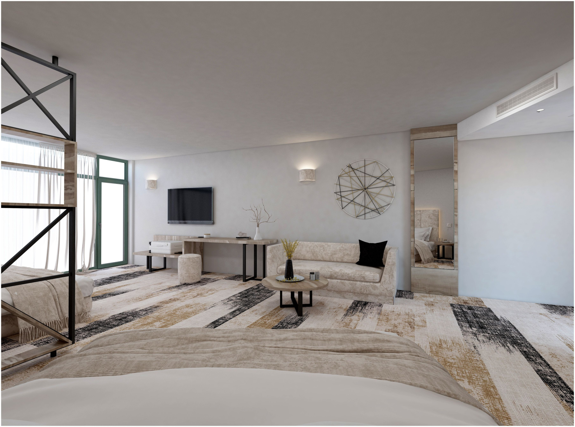 A szállodai szobák kialakítása eltérő lehet, így az elhelyezés a képeken látható berendezés alapján nem garantált.