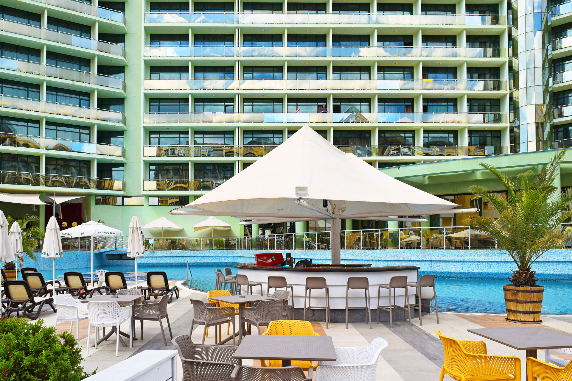A Marvel hotelt teljesen felújították a 2024-es szezonra. A szálloda 100 méterre található a tengerparti sétánytól és a strandtól, Napospart északi részén. 3,5 km-re az üdülőhely központjától, 150 m-re a buszmegállótól.