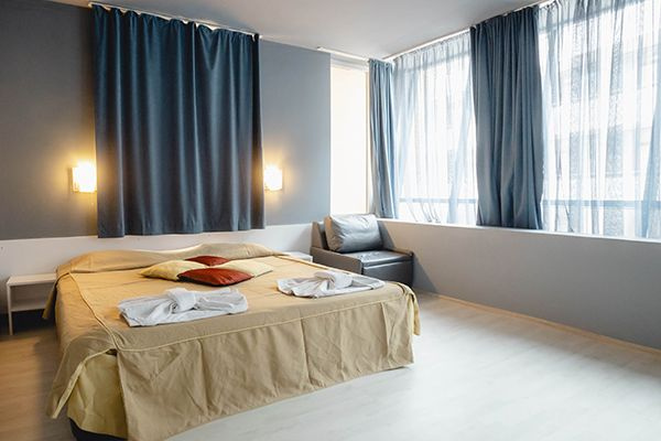 A Sun Palace Hotel egy négycsillagos szálloda, amely Bulgária Fekete-tenger partjának legnagyobb üdülőhelyének, a Napospartnak a szívében található. A szálloda kb. 100 méterre található a strandtól, és minden fontos közlekedési eszköz, bank, üzlet, étterem és klub közelében van.