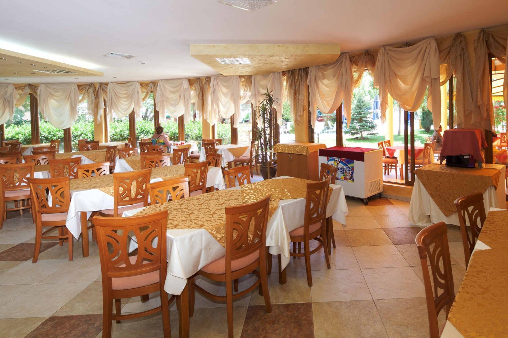 A főétteremben svédasztalos, látványkonyhával: