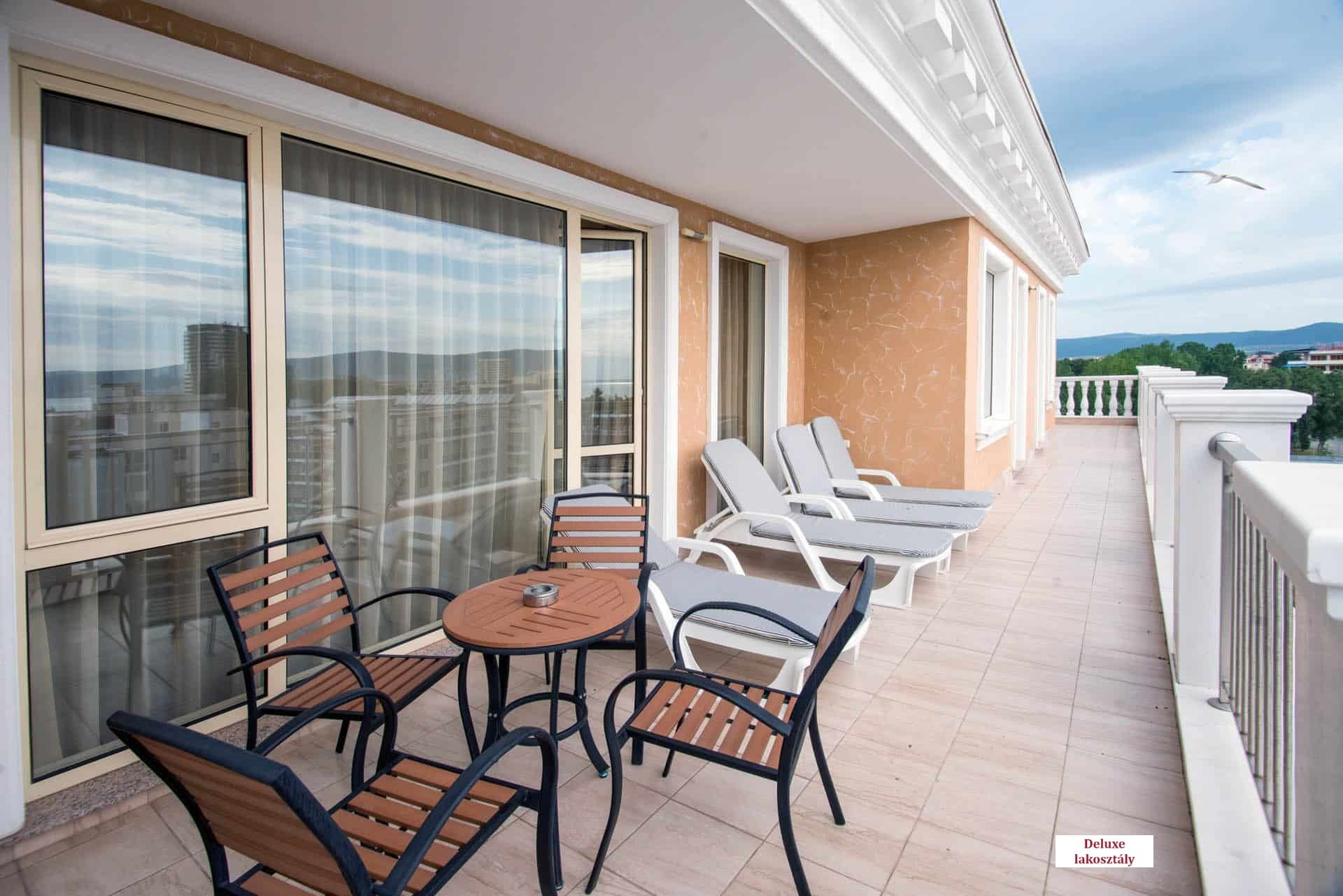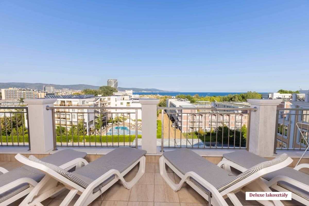 - Deluxe két hálószobás lakosztály (APT 2 bedroom VIP): 95-125 m², nappali és 2 hálószoba 2-2 egyszemélyes ággyal, 2 WC, 3 TV készülék, nagy panoráma erkély nyugágykkal. Maximum 6 fő elszállásolására alkalmas.