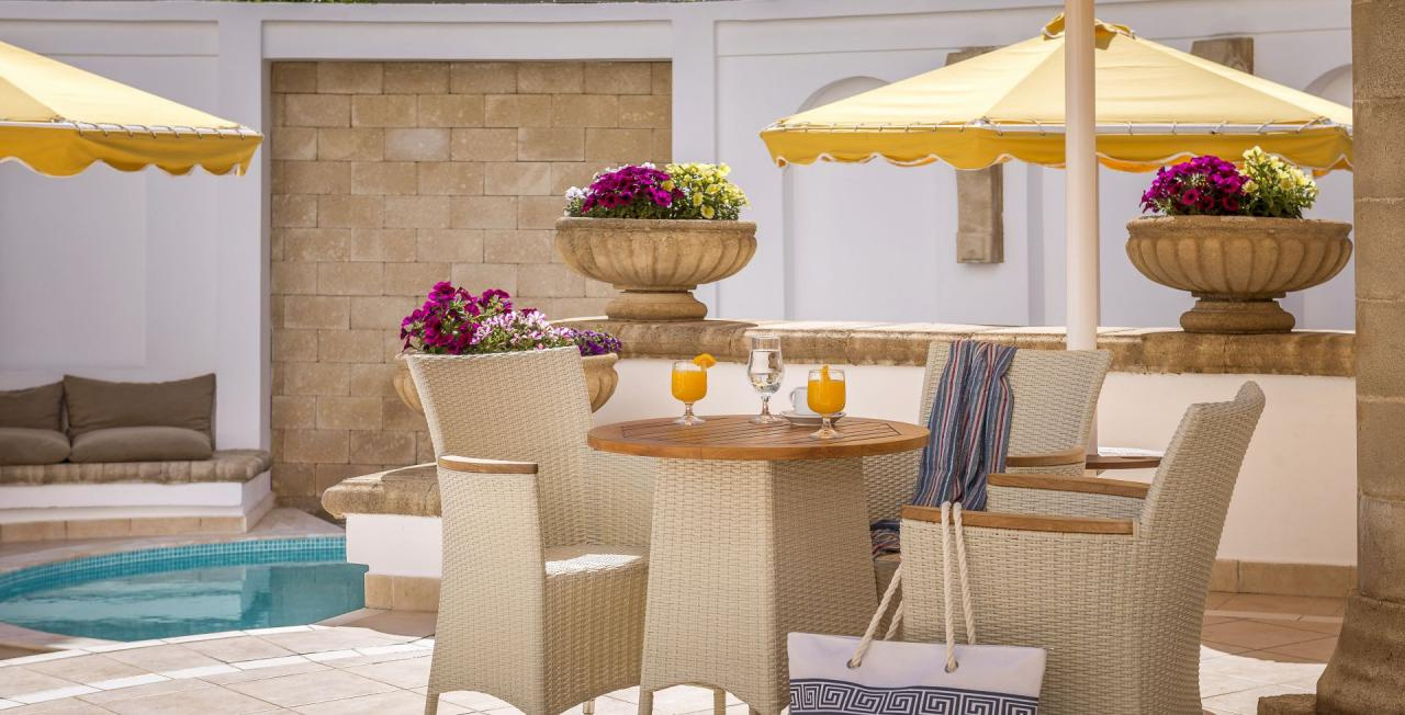 2 alapterületű, tengerre néző kilátással rendelkező lakosztály.