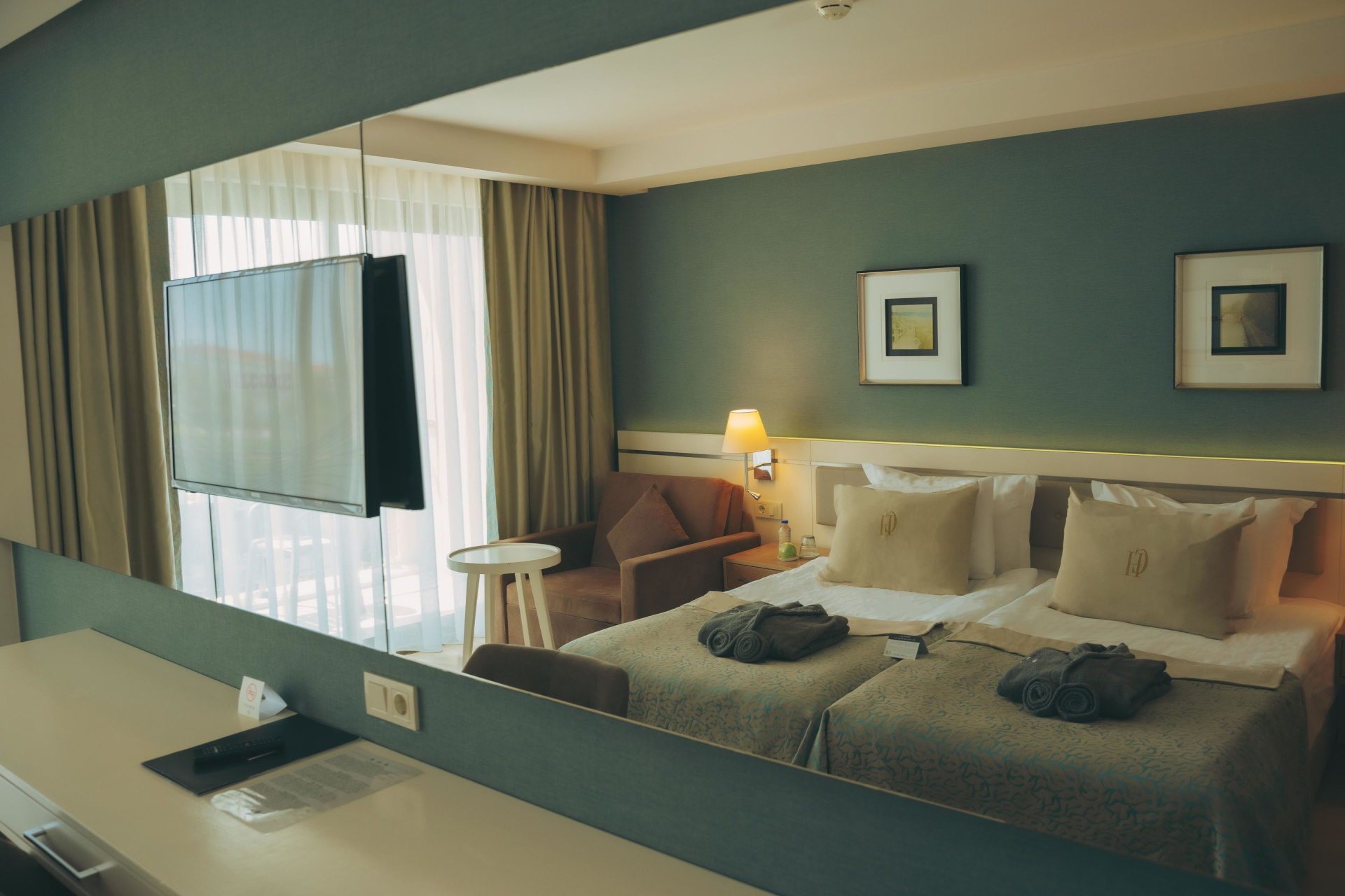 Légkondicionáló berendezéssel és fürdőszobával felszerelt szobák is vannak. A legtöbb szoba alapfelszereltségéhez erkély is tartozik, ahol kiváló lehetőség nyílik a pihenésre. Pótágy igényelhető. Ezen kívül van széf és minbár is. Egy telefon, egy TV-készülék és WiFi is a vendégek kényelmét szolgálja a nyaralás alatt. A fürdőszobában zuhanyzó található. Rendelkezésre áll továbbá egy hajszárító. Családi szobát és nem dohányzó szobát is foglalható.