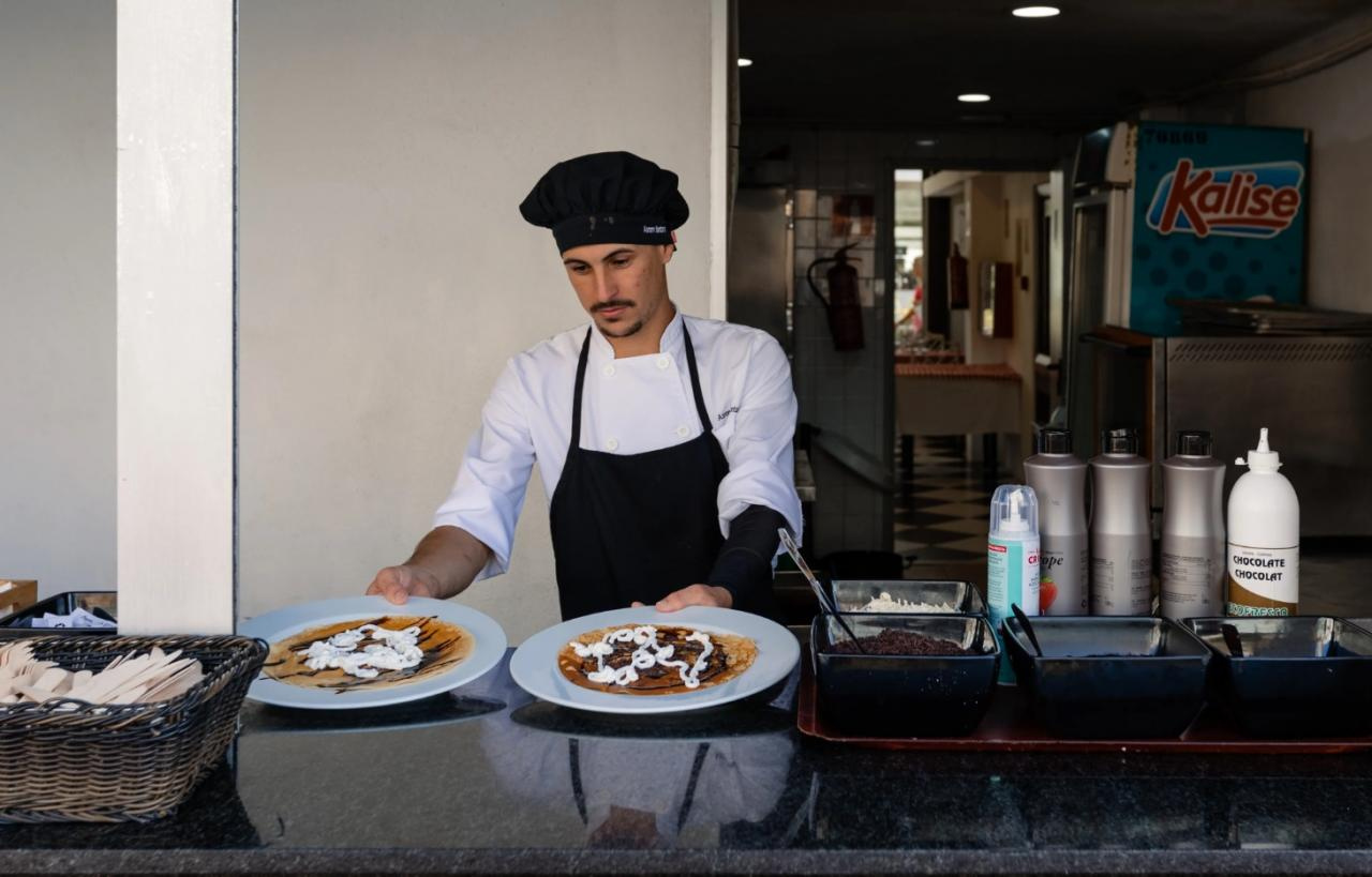 A reggeli svédasztalos reggelit kínálnak. Az ebédet és a vacsorát szintén a büféből szolgálják fel. Az étkezésekhez étterem és bár áll rendelkezésre.