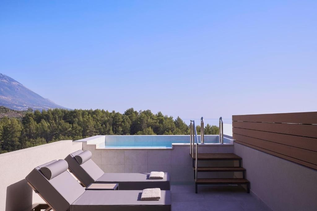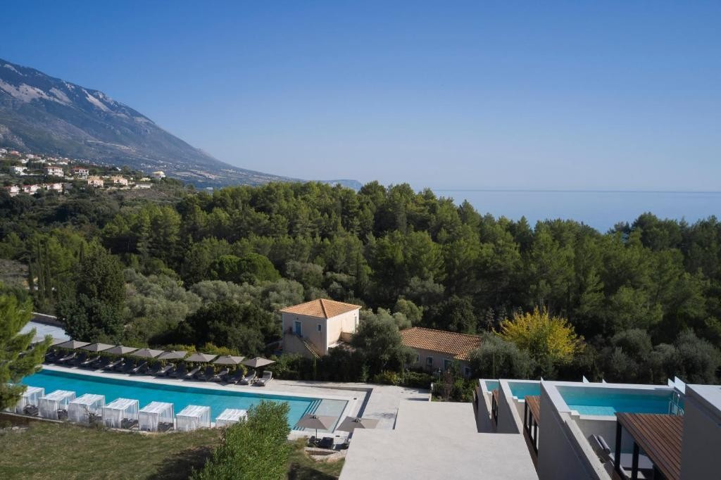 Az Adults Only szálloda 2023 nyarán nyitotta meg kapuit. Mousata csendes részén található, a központtól kb. 350 m-re, a strandtól kb. 250 m és a fővárostól, Argostolitól kb. 15 km-re, ahova menetrend szerinti buszokkal is el lehet jutni (buszmegálló kb. 350 m). Ideális választás a nyugodt piheésre vágyóknak, hiszen minden szoba saját medencével rendelkezik.