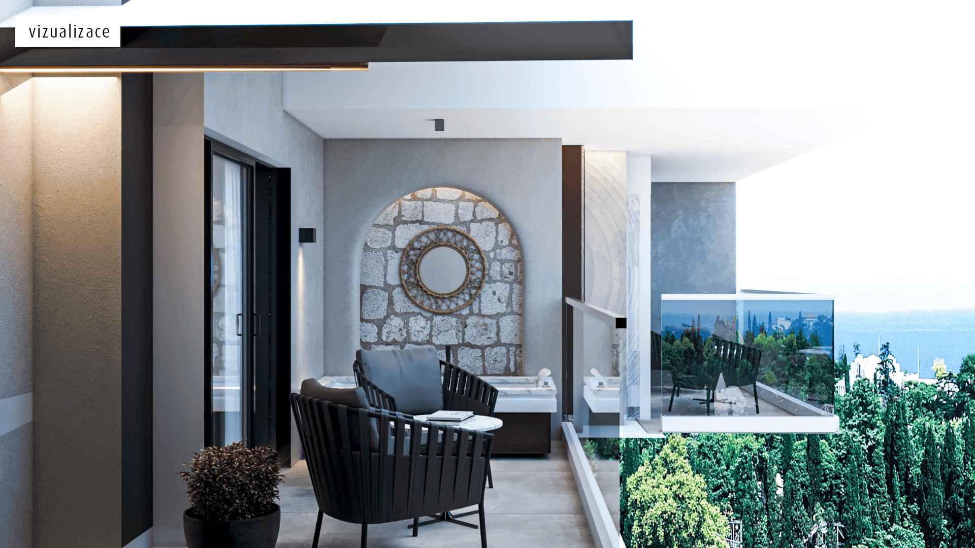 - tájra néző balkon vagy terasz