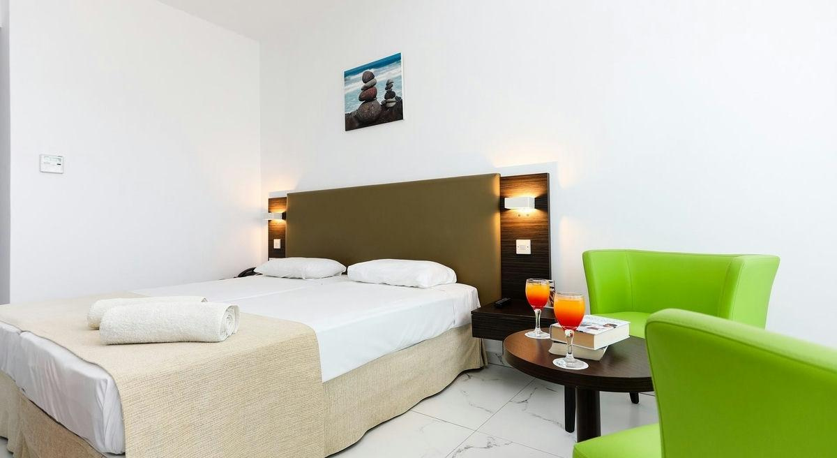 Szobák: minden standard szoba praktikusan berendezett, egy hálószobás (~22 m2), fürdőszobás, légkondicionálóval, hajszárítóval, síkképernyős tv-vel, vízforralóval, széffel, minihűtővel és telefonnal felszerelt. A szuperior szoba (~24 m2) extra kényelmet nyújt, modern dizájnnal és felszereltséggel és a szobában egy kis ülősarok (dohányzóasztal, székek) is található. A szuperior családi szoba hasonló felszereltségű, nagyobb alapterületű (~30 m2), a szobákban két ágy és pótágyként dívány (vagy normál ágy) található. A deluxe szobák (~24 m2) a szálloda legszebb szobái, ezek a szobák extra kényelmi funkciókkal vannak felszerelve, mint például egy 43 hüvelykes Smart TV, eszpresszó gép (napi kapszulafeltöltéssel), fürdőköpeny és szobapapucs. Ha magasabb szintű kényelmet keres, a deluxe szoba ideális választást jelent. Minden szobához erkély vagy terasz tartozik, szárazföldi, medencére vagy tengerre néző kilátással (különböző irányú rálátással).