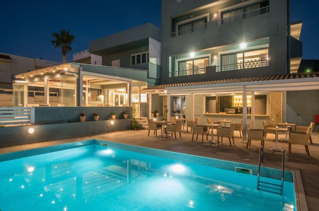 A szálloda Stalis központjában, közvetlenül a homokos strandon fekszik. Modern és ízlésesen berendezett szobákkal és All Inclusive ellátással várják a vendégeket. A közelben számos üzlet, taverna és bár található. Minden korosztály számára ajánljuk.