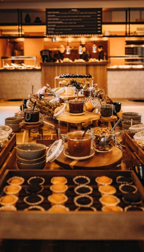 Büféjellegű reggelivel foglalható. A szálloda éttermében térítés ellenében további fogások is fogyaszthatók. A Cantina étteremben elérhető vegán és gluténmentes snack is. A szálloda 2 bárral rendelkezik.