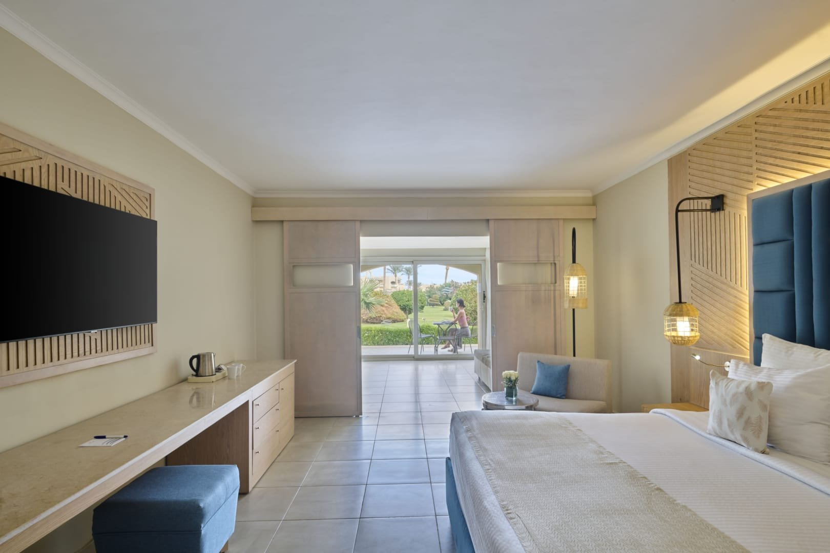 SZOBÁK : A Standard kertrenéző szoba (DZ) Méret 34 m² maximum 3 fő részére alkalmas (2 felnőtt + 1 gyermek), kényelmes és pihentető tartózkodást biztosítva; a szobában vagy egy franciaágy, vagy két külön ágy található, napos erkély, modern felszereltség, légkondicionáló, zuhanyzó, minibár, széf, TV, tea- és kávéfőző, hajszárító, így ideális pároknak vagy kis családoknak.