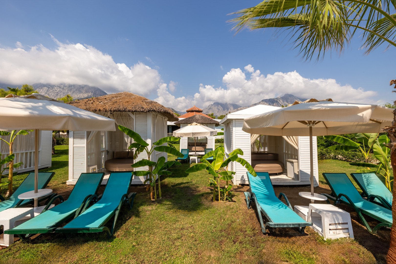 A privát, széles, homokos-kavicsos strand kb. 200 m-re található a főépülettől. A strandot egy kerten és egy hídon keresztül vezető ösvényen lehet elérni, amely csak a szálloda vendégei számára van fenntartva. A strand elnyerte a Kék Zászló tanúsítványt. A strand területén szabadtéri medence, snackétterem és Ultra All Inclusive bár is található. Ingyenes napozóágyak, napernyők, matracok és törölközők, pavilonok (térítés ellenében).