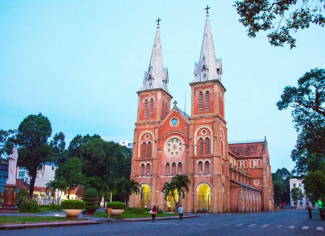 Délután látogatás a történelmi jelentőségű Újjáegyesítési Palotában, amely a vietnámi háború végét szimbolizálja, és egykor az elnöki rezidenciaként szolgált. A program folytatásaként megállunk a Notre Dame-katedrális előtt, amely Ho Si Minh-város egyik legszebb és legjellegzetesebb francia építésű temploma. Innen átsétálunk a szomszédos Városi Főposta épületéhez, amely szintén a francia gyarmati építészet egyik ikonikus példája.