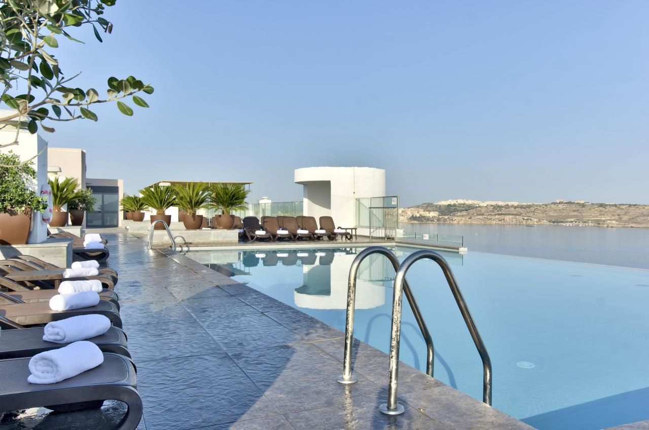 Fekvése: a több, mint 500 szobával rendelkező 2013-ban átépített mór stílusjegyeket viselő modern szálloda, Qawra üdülőhely központjában található, a hangulatos tengerparti sétánytól és a strandtól (nyári időszakban durvahomokkal feltöltött) mindössze 100-150 méterre. A szálloda közelében található buszpályaudvarról egyénileg is könnyen megközelíthetjük a sziget bármely pontját.