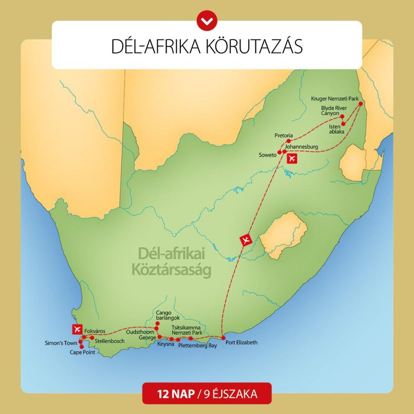 Fontos! A dél-afrikai elnök rendkívüli állapotot hirdetett ki a Dél-Afrikát sújtó energiaválság miatt. Ennek következtében naponta többször többórás mesterséges áramszünet van az országban. Így érdemes vinni zseblámpát, és az elektromos eszközeink töltéséhez power bank-et.