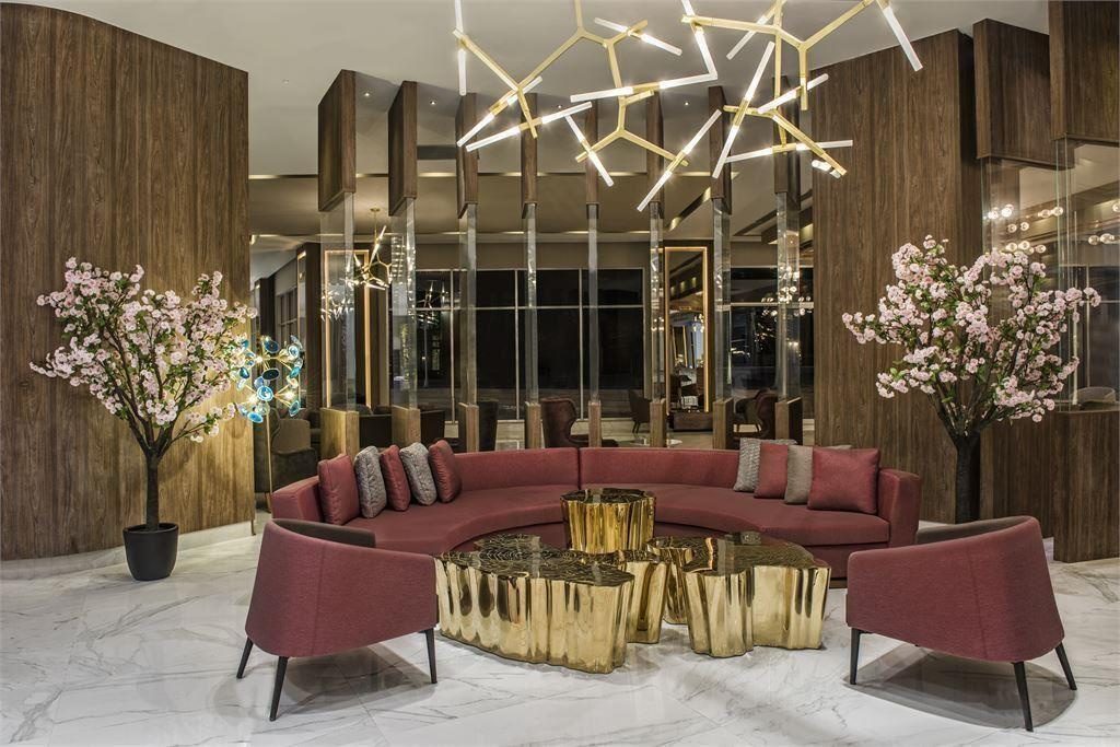 Egy főépületből és négy 9 emeletes tömbből áll. A kényelmet 19 lift (ebből 7 panorámás) szolgálja.