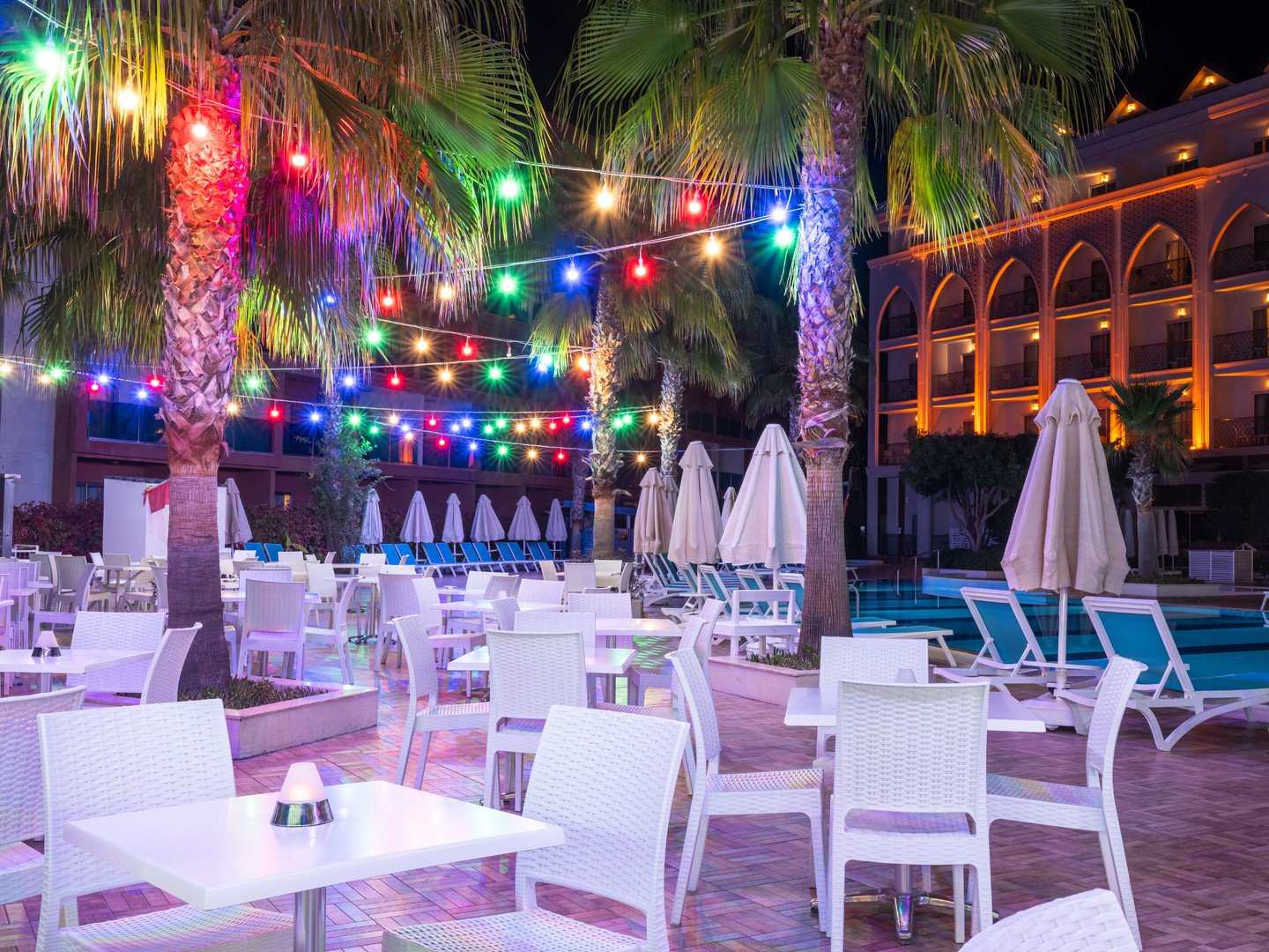 All inclusive vendéglátás: reggeli, ebéd és vacsora büfé formájában, snackek, helyi alkoholos és alkoholmentes italok, több bárban. Két à la carte étterem (oszmán és mediterrán stílusú) a fő étterem mellett.