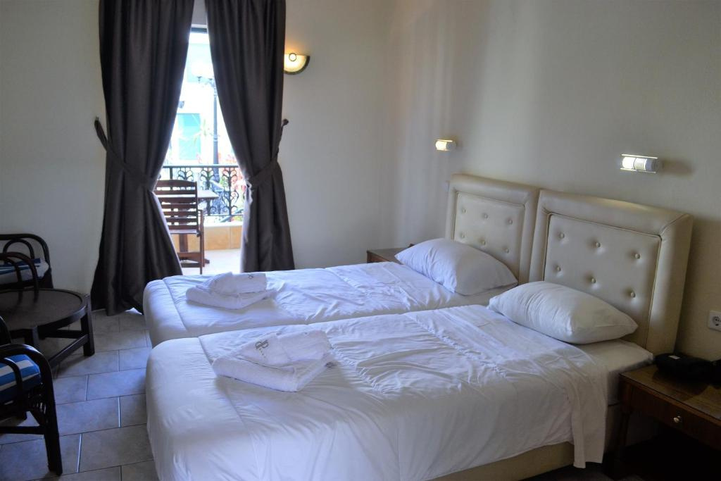 A Diogenis Blue Palace napfényes és világos szobái légkondicionáltak és fűtöttek. Mindegyikben LCD TV, telefon és mini hűtőszekrény található. A szobákban napi takarítás biztosított.