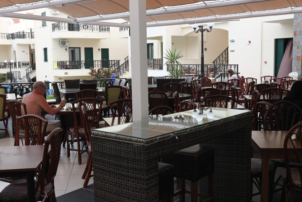 A szálloda kizárólag all inclusive ellátással foglalható. A szálloda éttermében különféle krétai és mediterrán ételeket szolgálnak fel. A medence melletti bárban rágcsálnivalók, kávék és italok fogyaszthatók. A séf görög esteket és főzőshow-kat szervez.