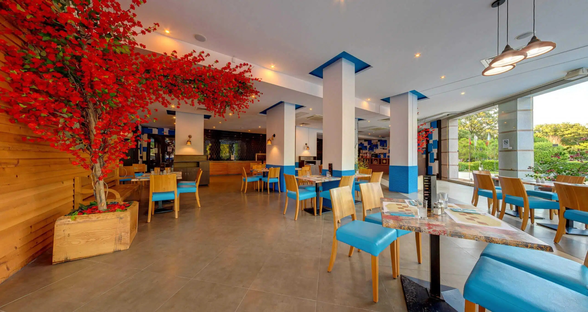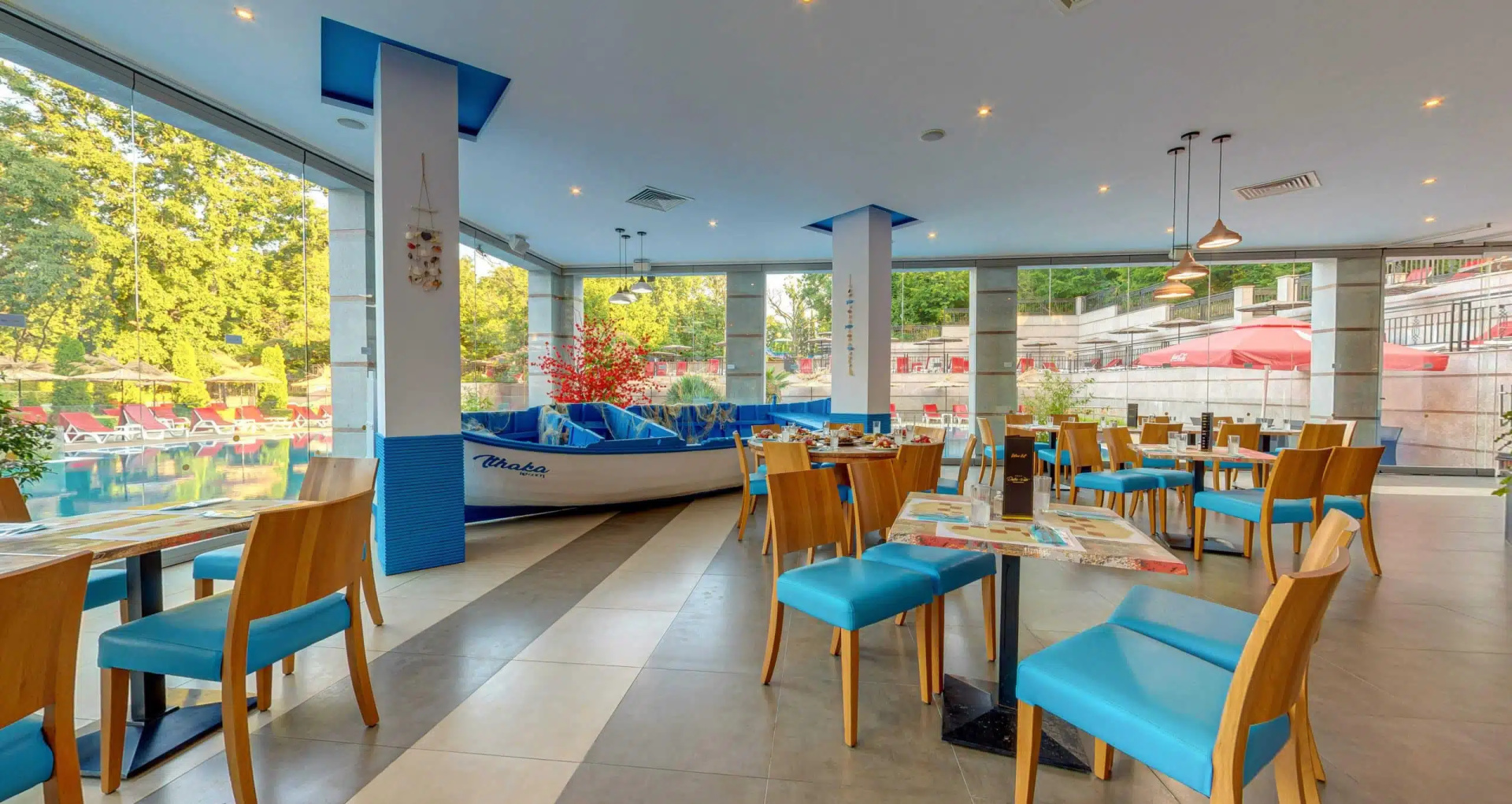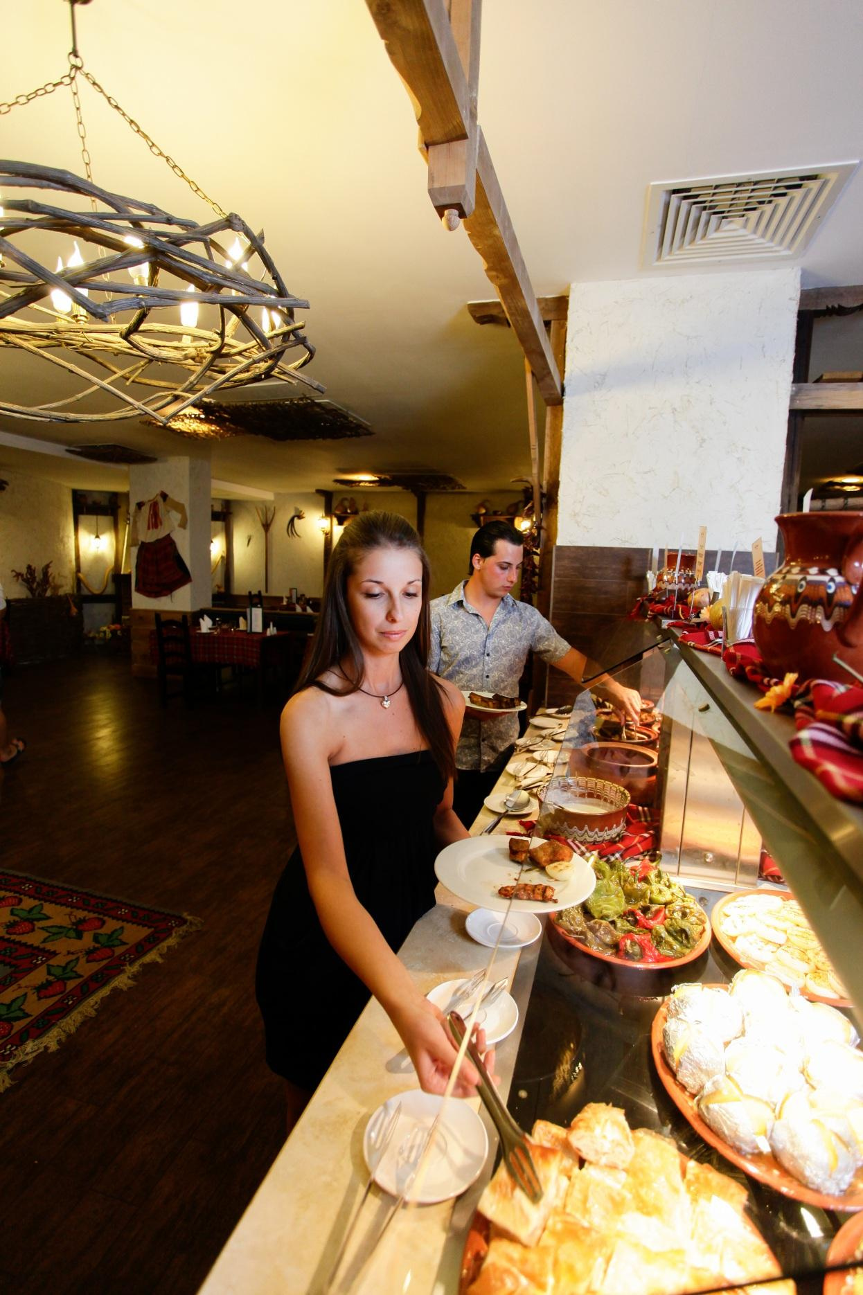All inclusive ellátással foglalható, mely büféjellegű reggelit, ebédet, vacsorát, és napközben különböző snackeket, helyi alkoholos- és alkoholmentes italokat tartalmaz. Heti 2 alkalommal tematikus estet tartanak. 7 éjszakás tartózkodás és előzetes foglalás esetén egy alkalommal a vendégek étkezhetnek a bolgár vagy görög a la carte étteremben.