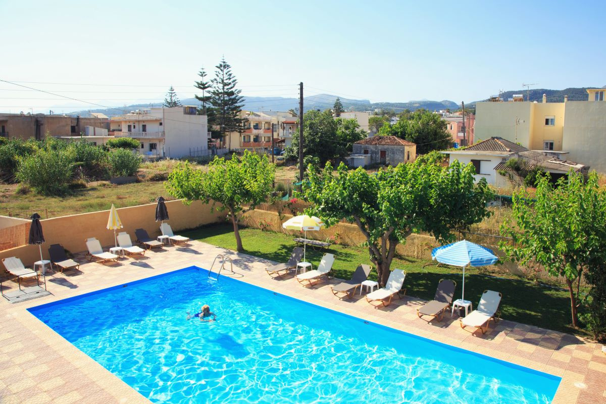 Fekvése: Rethymno homokos, néhol kavicsos tengerpartjától csupán kb. 50 méterre helyezkedik el. Közvetlenül az épülete előtt kisebb játszótér található. Retyhmno óvárosa kb 3 km-re található. Közelében éttermek, üzletek is vannak. Szolgáltatások: Medence, mely körül napágyak és napernyők vehetők igénybe. Parkoló a vendégek részére korlátozott számban elérhető. Ingyenes WIFI a közösségi terekben és a szobákban is. Elhelyezés: Egyszerűen berendezett apartmanokban, melyekben konyhasarok, hűtő, egyénileg szabályozható légkondicionáló (ingyenes), TV, zuhanyzós fürdőszoba, széf (ingyenes), WIFI (ingyenes), balkon/terasz szolgálja a vendégek kényelmét. (A 3. és 4. ágy szófaágy.) Ellátás: Önellátás. (Felár ellenében reggeli kérhető az Aristea Hotelben kb. 30 méterre)Egyéb: